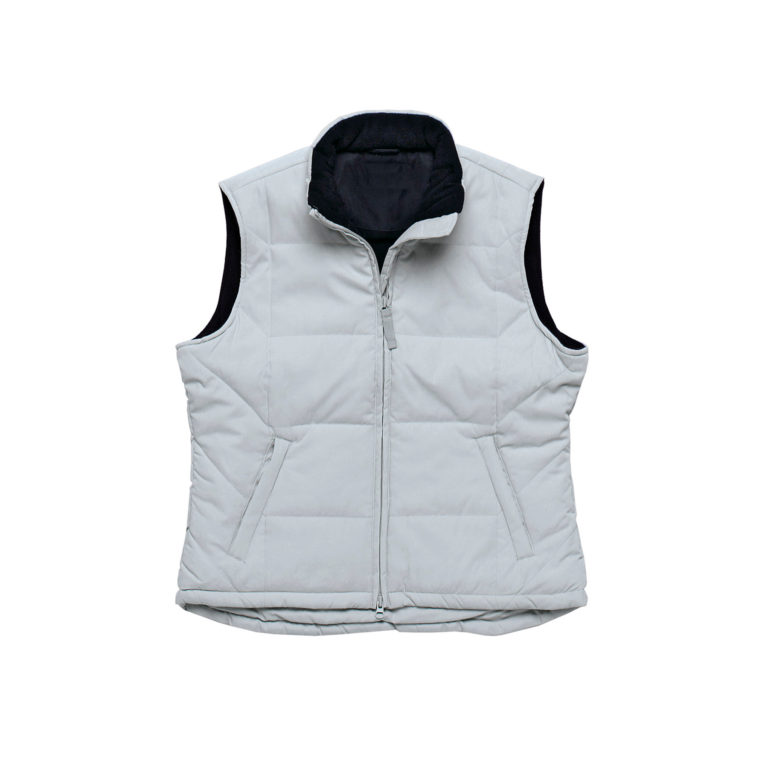 100% polyester microfibre outer, Fully lined with anti-pill microfleece, Concealed plaquet, Tape puller on two way zipper, Two zippered welt pockets, Quilted stitch detailing with polyfill padding, Shaped hem, Zippered branding access. Colours: silver/black. Sizes: 8-18