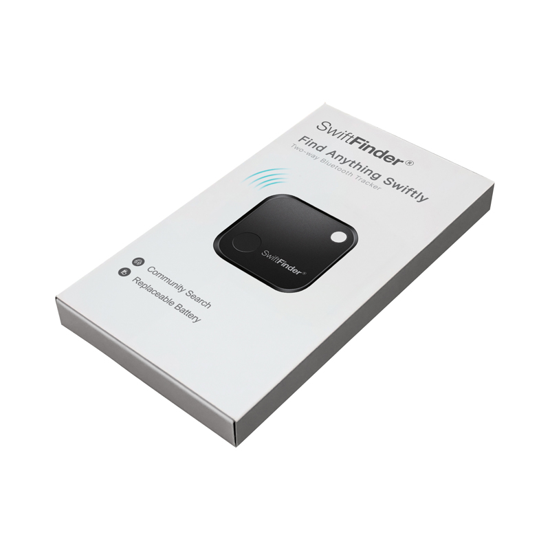 Features: Take the tracking of your valuables to a new level with the SwiftFinder Smart Tag, and it s easy to use APP. Compliant with the GDPR European Privacy Policy, this Smart Tag features an object and phone finder, object tracker, separation alert, custom ring tones, selfie remote, family sharing, crowd GPS, Amazon Alexa, Siri Shortcut, Google Assistant and multi-device management. Includes a user manual and battery. Material: ABS, PC. Certification: Patented Design, CE, FCC, RoHS, BLE, GDPR, UN38.3, SDS. Colours: Black. Product Size: 41 x 41 x 5.6 mm. Branding Area: Front: 28 x 23 mm, 38 x 13 mm, Rear: 28 x 4 mm, 38 x 13 mm. Standard Packaging: Coloured Box.